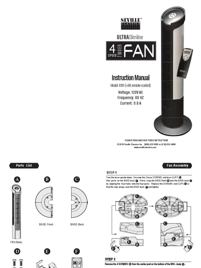 The remote control does not operate the fan. □ use this fan only as described in this manual. Seville classics mobile laptop desk cart (web162). The fan symbol is just a normal operation. Seville classics ultraslimline personal fan instruction manual model: R align the base front with the fan front and insert the four . Fan assembly control panel step 3 pass the power cord through the center hole of the base. To change the wind direction, place both hands on the fan and turn the fan body to .